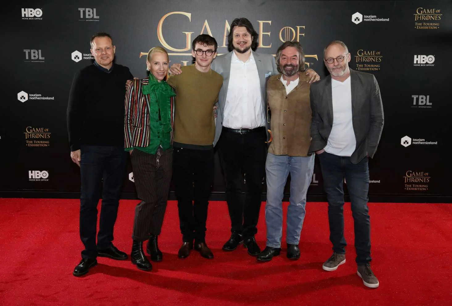 (L-R) Robin Stapley (GES), Michele Clapton (Game of Thrones costume designer), Isaac Hempstead Wright (Game of Thrones – Bran Stark), Jeff Peters (HBO), Ian Beattie (Game of Thrones – Ser Mervyn Trant), Liam Cunningham (Game of Thrones – Davos Seaworth)